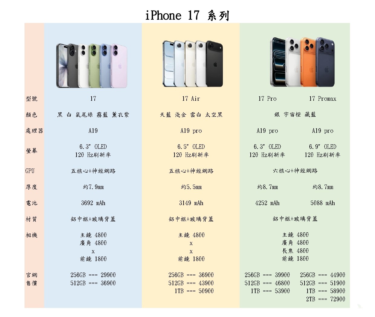 2025年 9月10日 iPhone 17 發佈 簡單看